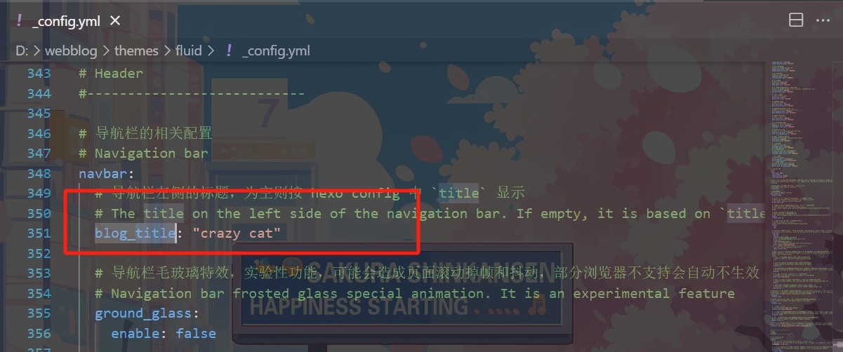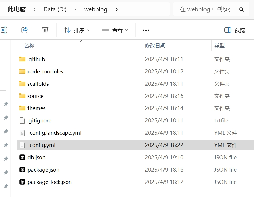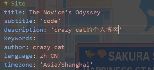 修改 Hexo 博客目录中的 _config.yml。我是将Hexo安装到了D盘。