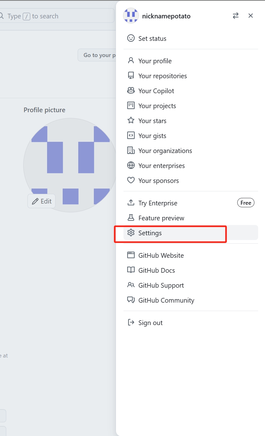 token为GitHub的Personal access tokens,获取方式如下图点击右上角头像,找到