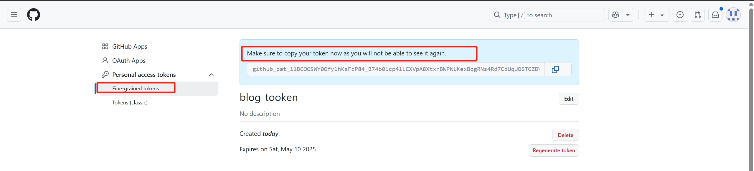 Fine-grained tokens还是Tokens(classic)都是可以的,不过要记得按时更新你的token,因为你创建的时候这个token是有有效期的,当然如果心比较大设置个永久的也行。