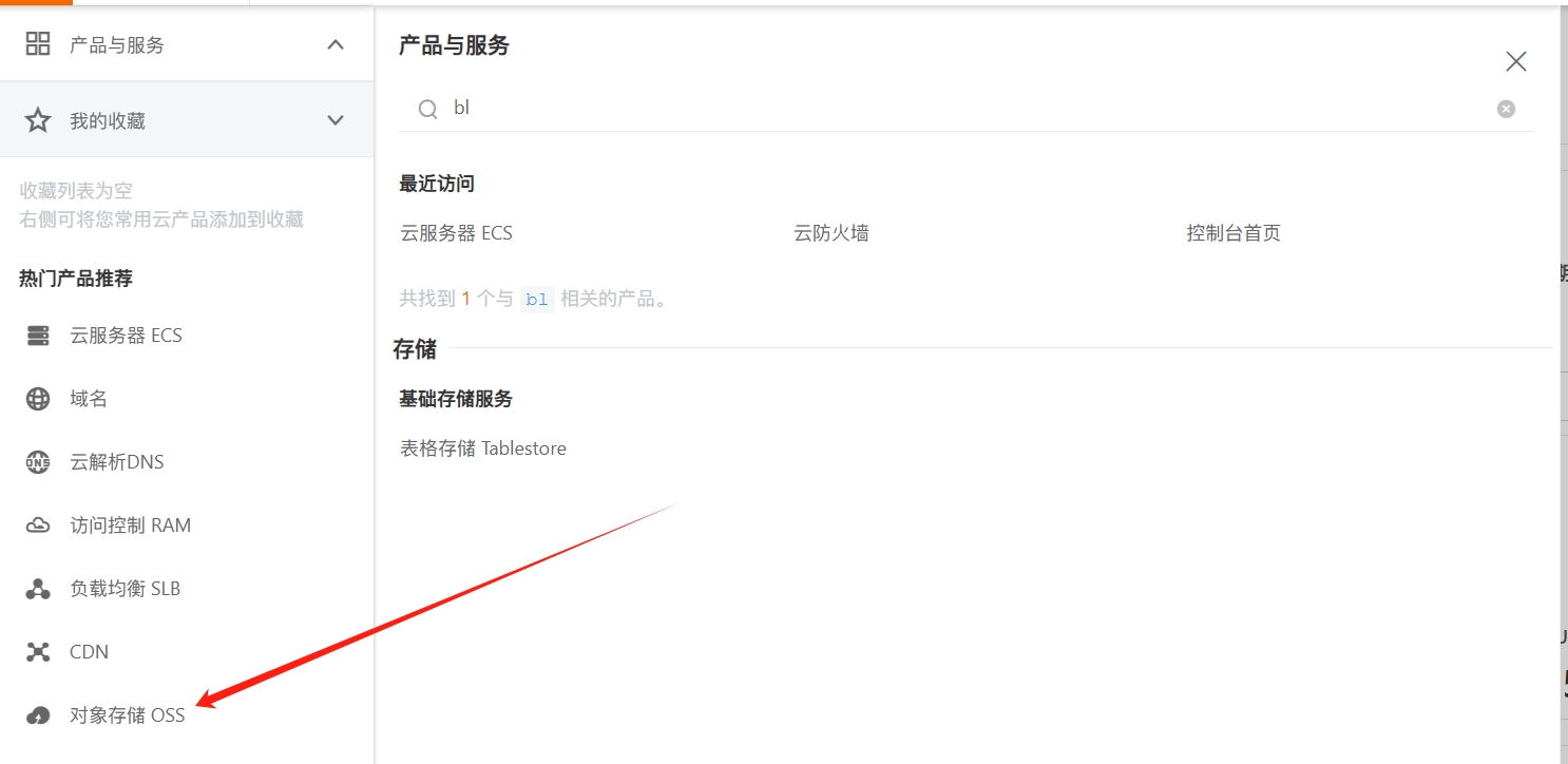 - 打开阿里云首页,点击左上角目录栏,进入对象存储