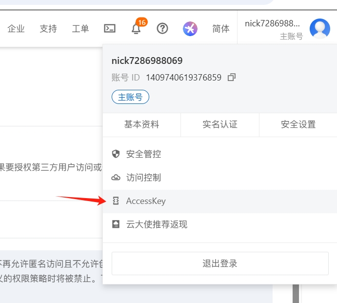 AccessKey,将创建号的key复制保存下来,之后在Picgo上需要用到。 - 打开